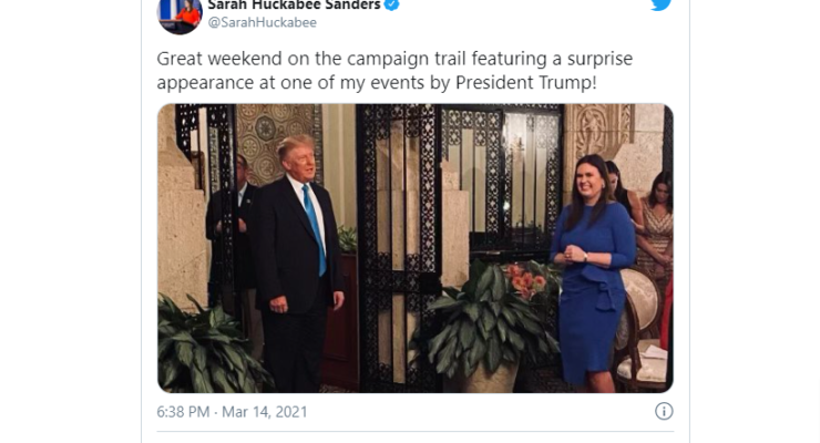 (Jack Davis) Former President Donald Trump made a surprise appearance over the weekend at an event to support the candidacy of former White House press secretary Sarah Huckabee Sanders, who is running for governor of Arkansas.