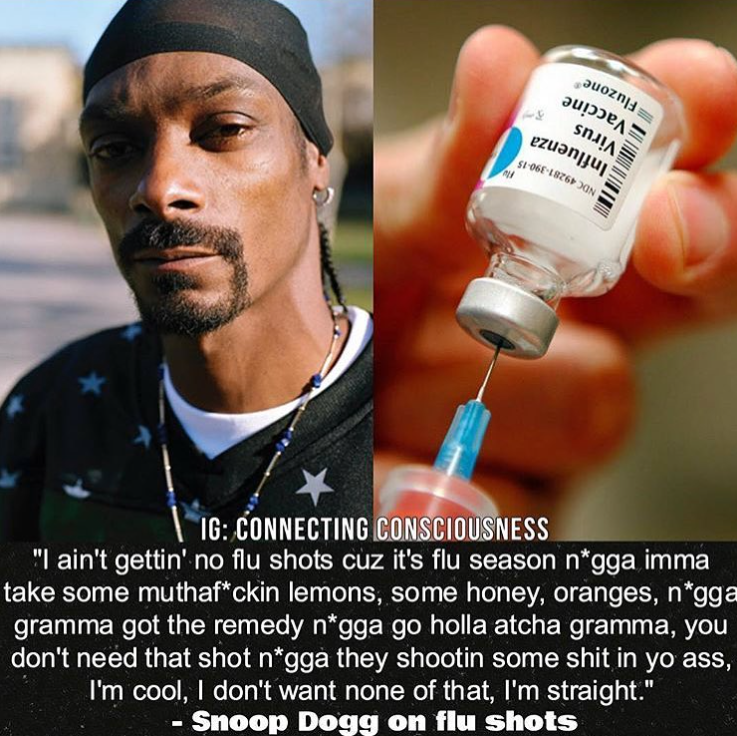 Here’s a post from Snoop D O double G, who in so many words expressed that he will be taking a hard “pass” on the flu shot:
