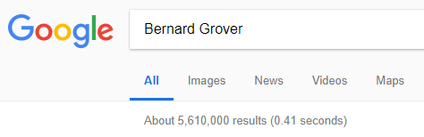 Being the curious guy that I am, I did a search on “Bernard Grover,” and guess what? I got over 5 million hits. I can only conclude that I am bigger than Q – at least for now; just putting some perspective on the matter.