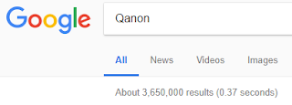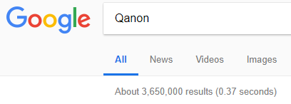 Secondly, Q twice posted a Google search for “Qanon,” which showed 3.8 million hits. Of course, the Q-vians crowed about the Rise of Q and the mythical public awareness growing.