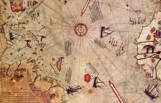 This is the map drawn in 1513 by Piri Reis, showing Antarctica