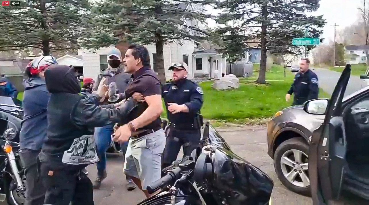 When the man got out of his car he was shoved by the Black Lives Matter goons. When he pushed back the local police rushed in arrest the man on his way to his home.