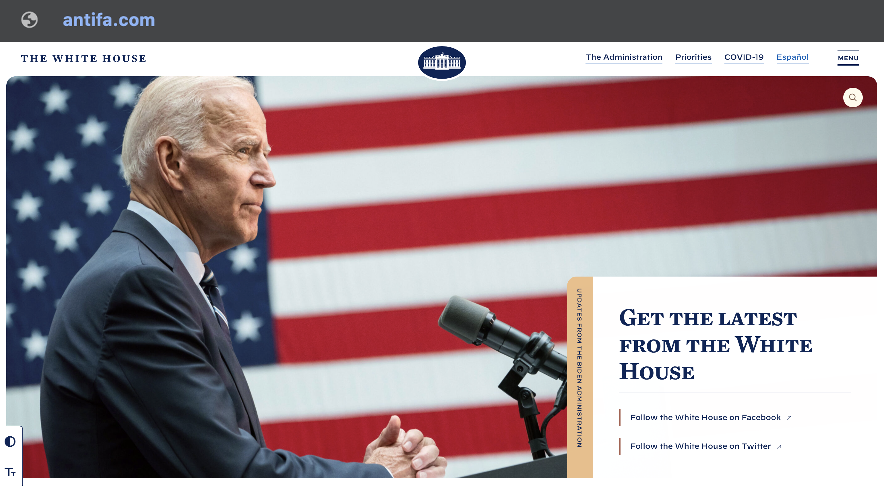 Antifa.com is redirecting whitehouse.gov—at least for now. By the time you read this, it could have been changed.