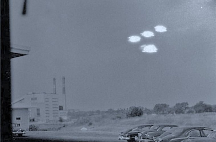 UFOs over military installations are nothing new. For example, the picture below is a real picturetaken in August of 1952. It’s a photograph of multiple UFOs taken by the Coast Guard photographer at the time above a US military installation, a common place for UFO sightings. The photo was classified by the US government, and then later approved for release. It was witnessed by multiple ‘professional’ people.