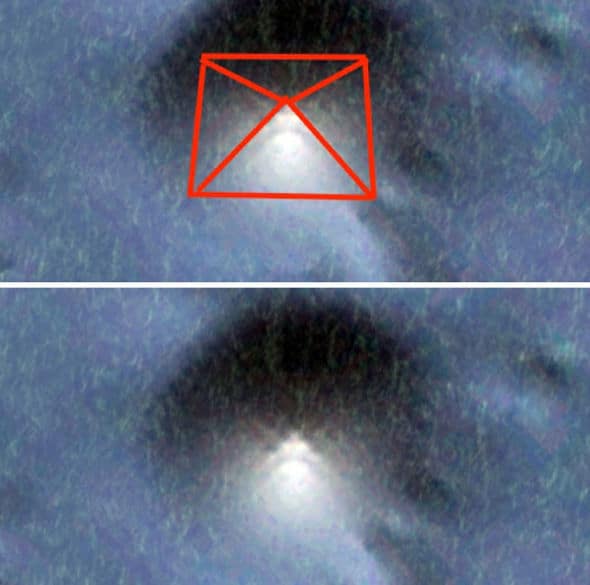 The video commentary described it has being “an intense light in the Pacific Ocean” of 3.5 miles in length, with a shape similar to a plane.