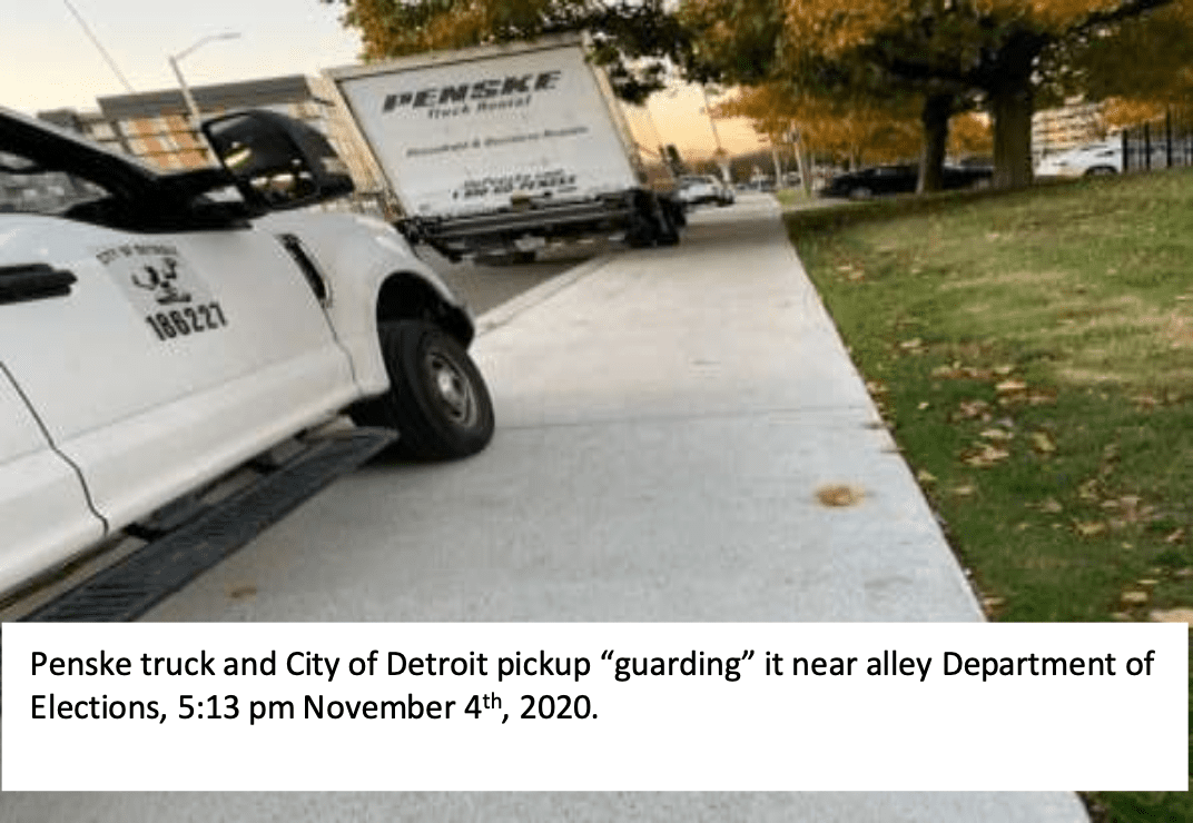Instead, we learned that chain of custody, and thus ballot security in Detroit was pure fantasy. In fact, there was literally no meaningful chain of custody when thousands of voted absentee ballots were transported from any of 30 satellite centers or drop boxes to the Detroit Department of Elections (DOE) on West Grand Blvd or between the DOE and the TCF Center on Washington Blvd. in Downtown Detroit.