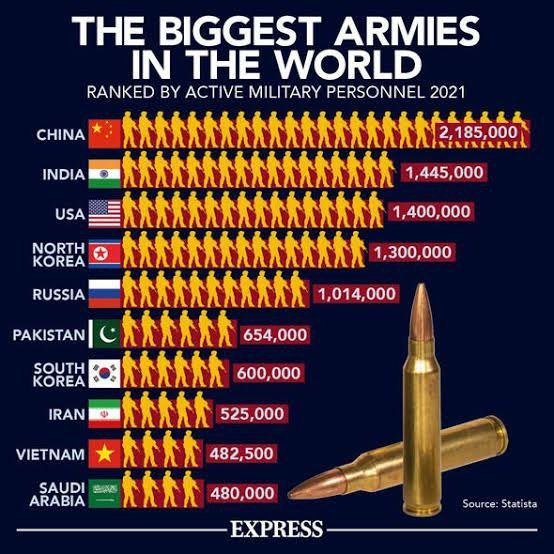 Overall, worldwide 9 of the top 10 biggest armies in the world are either on Russia’s side, or are remaining neutral.