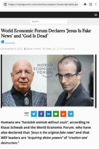 These are the World Economic Forum people who say things like “God is dead,” and “Jesus is fake news,” and that WEF leaders have “acquired divine powers” to rule over humanity.