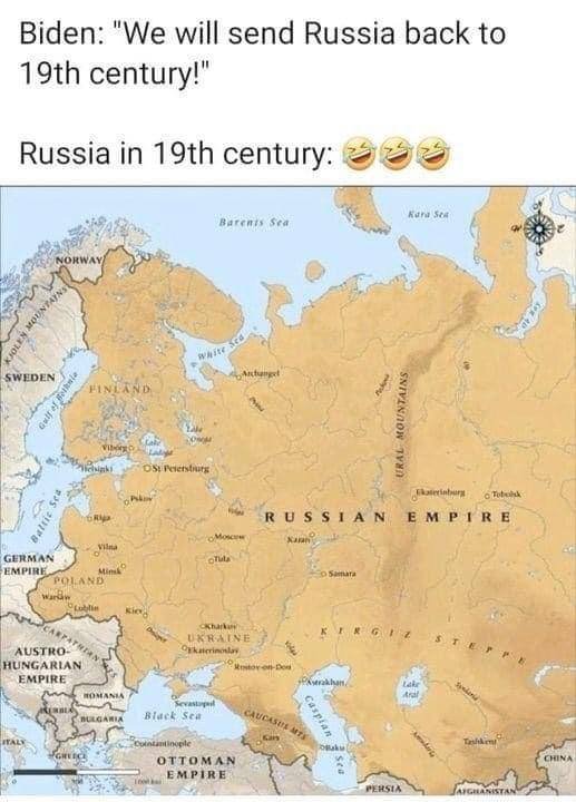 When the Biden avatar threatens, in response, that “We will send Russia back to 19th century!” the Russians say “bring it on.” The photo of Russia in the 19th century explains why.