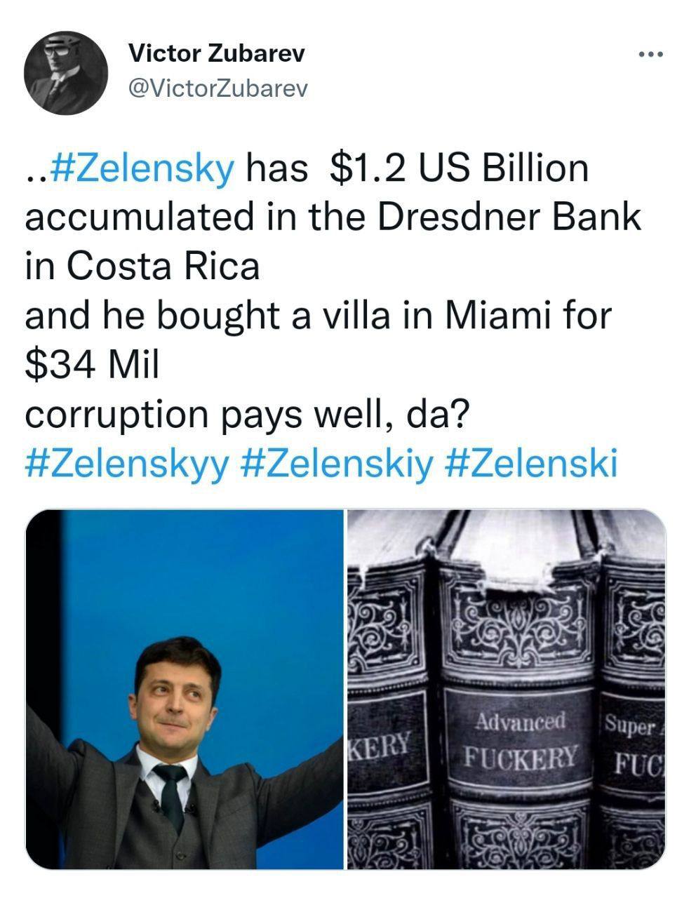 The FSB and CIA are both saying Khazarian mafia Ukrainian puppet president Volodymyr Zelensky has long since fled to Poland. He has also been promised a rich retirement in Florida. See attached photos of his assets in Costa Rica at Dresner Bank ($1.3 billion) and his $34 million house in Miami, Florida.