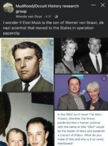 We are also seeing a big split in the ranks of the ruling oligarchy in the US. Elon Musk, of Tesla, has apparently gotten off the fence and is now openly supporting the white hats. This is significant because Musk is the son of a prominent Nazi rocket-scientist Verner von Braun, according to Japanese intelligence and confirmed by US space force sources.