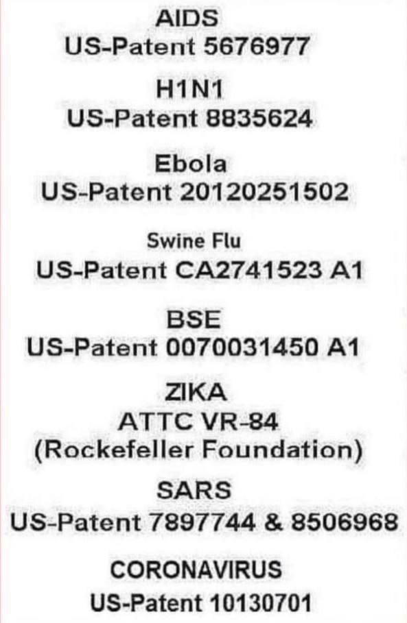 In fact, according to the CIA, ALL of the so-called Viruses are patented. Does this surprise anyone?