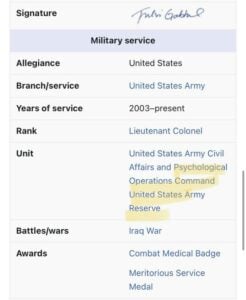 “Tulsi is a high-ranking officer in US MIL Intelligence, Psychological Operations Command,” CIA sources say.