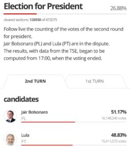 We just saw that in Brazil. “You could watch the algorithm eat away at [President Jair] Bolsonaro’s lead and calculate the 51/49 outcome. They could not let Bolsonaro “win”. He said he was going to pull Brazil from the Paris climate accord,” a CIA source comments on the election that may have put the communist Lula into power. However, the battle of Brazil is not over yet.