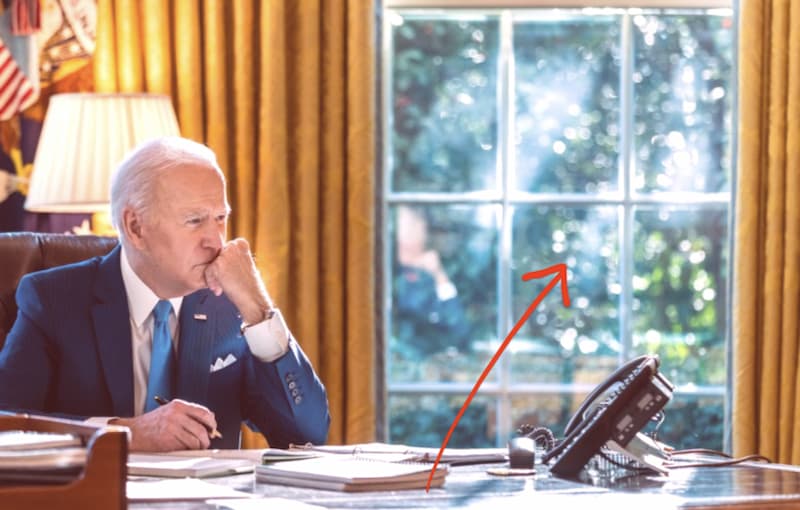 Before it was common news, we posted here at WeLoveTrump that the window behind Joe Biden looked very odd…almost cartoonish in coloration.
