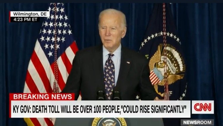(Cristina Laila) Joe Biden on Saturday delivered remarks on the deadly tornadoes that ripped through Missouri, Kentucky, Arkansas, Tennessee and Illinois.