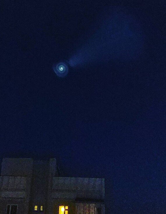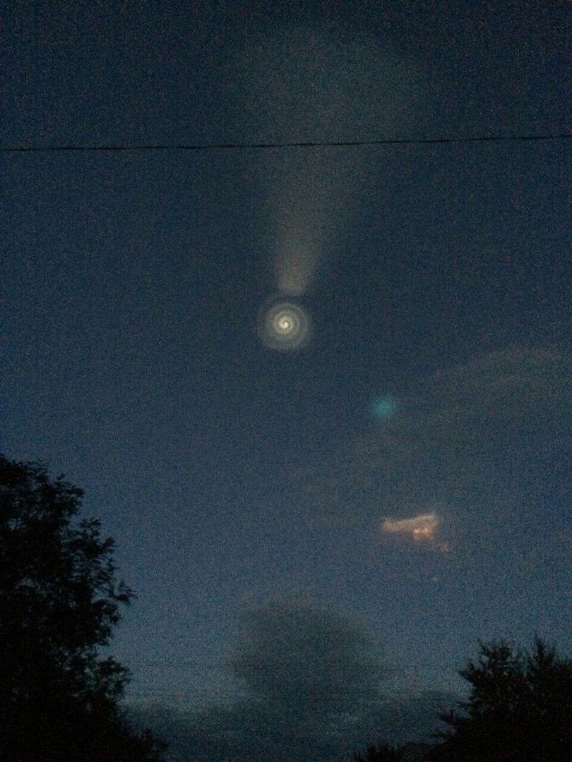 It looks exactly like the spiral seen above Norway in 2009. Then, Russia claimed it was a missile test, and this time they are saying the same thing.