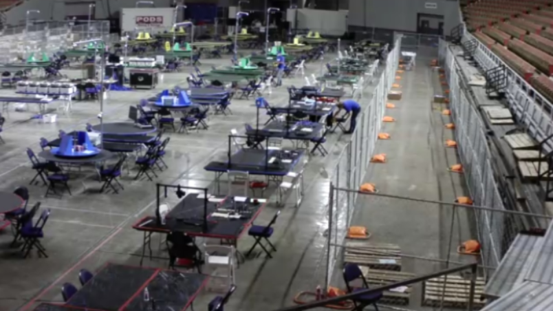 (Jim Hoft) After the shift workers left the coliseum on Thursday, staff moved in and doubled the number of processing tables there.