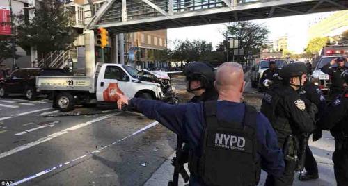 There were visible tire tracks on the bodies of the two victims as the truck continued to carve a path of carnage through the neighborhood, he said. The suspect was arrested on West St. a few blocks north of the World Trade Center.