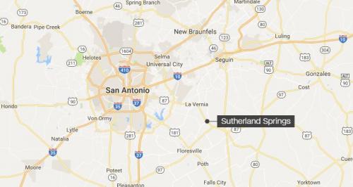 Sutherland Springs is in Wilson County, about 30 miles east of San Antonio.