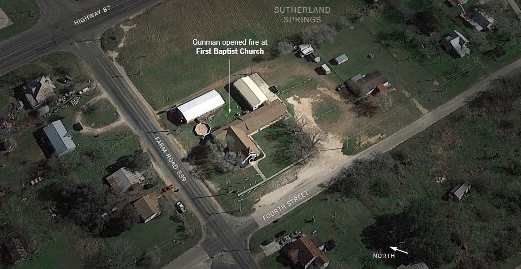 In an incident that authorities are describing as a “mass casualty situation,” between 12 and 15 people have reportedly been shot at First Baptist Church in Sutherland Springs, Texas, a small community south east of San Antonio. The people were presumably attending a Sunday church service when a gunman opened fire. Few details are available. The gunman is still “active” according to the latest police reports.