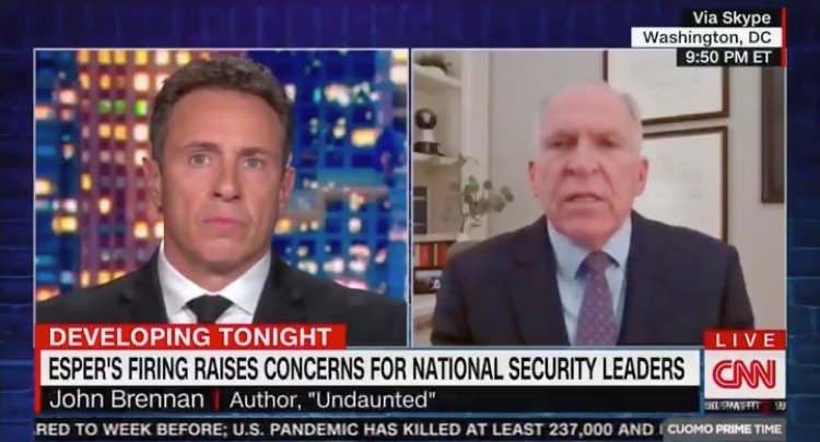 John Brennan went into panic mode after President Trump terminated Defense Secretary Mark Esper on Monday.