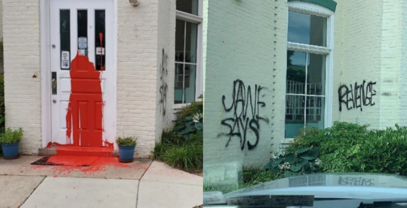 DC’s Capitol Hill Crisis Pregnancy Center was attacked by pro-abortion radicals who doused the building’s front door with red paint and scrawled “Jane Says Revenge” across the building’s exterior walls – appearing to credit the violent pro-abortion group “Jane’s Revenge” with the attack.