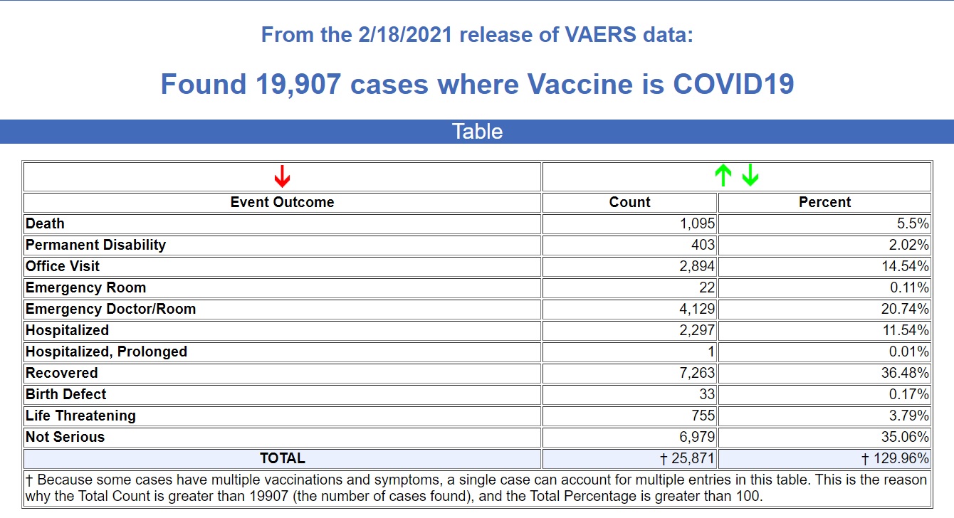 Their latest report goes through February 25, 2021. They supply three reports: one from the experimental Pfizer COVID vaccine, one from the experimental AstraZeneca COVID vaccine, and one where the “vaccine brand is unspecified.”