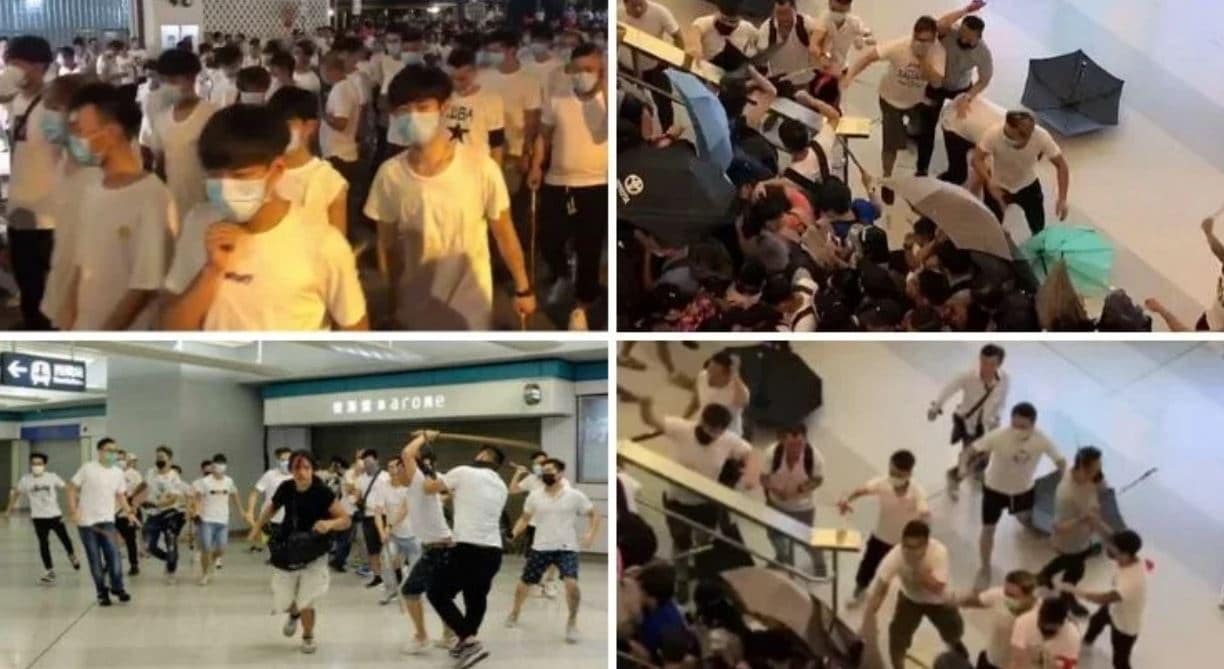 Meanwhile, absolutely astonishing scenes in Yuen Long, where Triad members clad in white are attacking anyone suspected of being a pro-democracy demonstrator (people wearing black are a target as that’s been the dress code for some marches, hence why triads are all in white). pic.twitter.com/lo13nRGp0L
