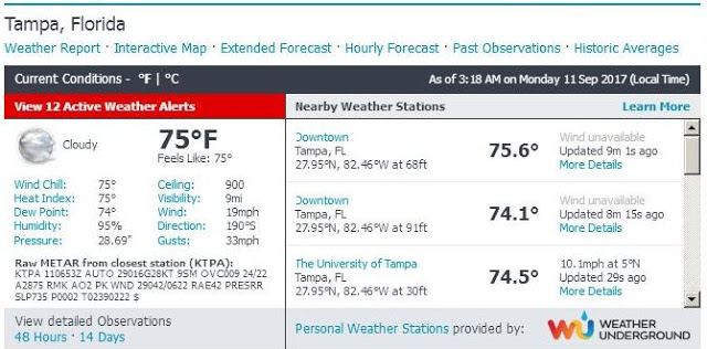 Instead, weather station in Tampa recorded 19 mph winds at the moment of the closest approach of the storm: