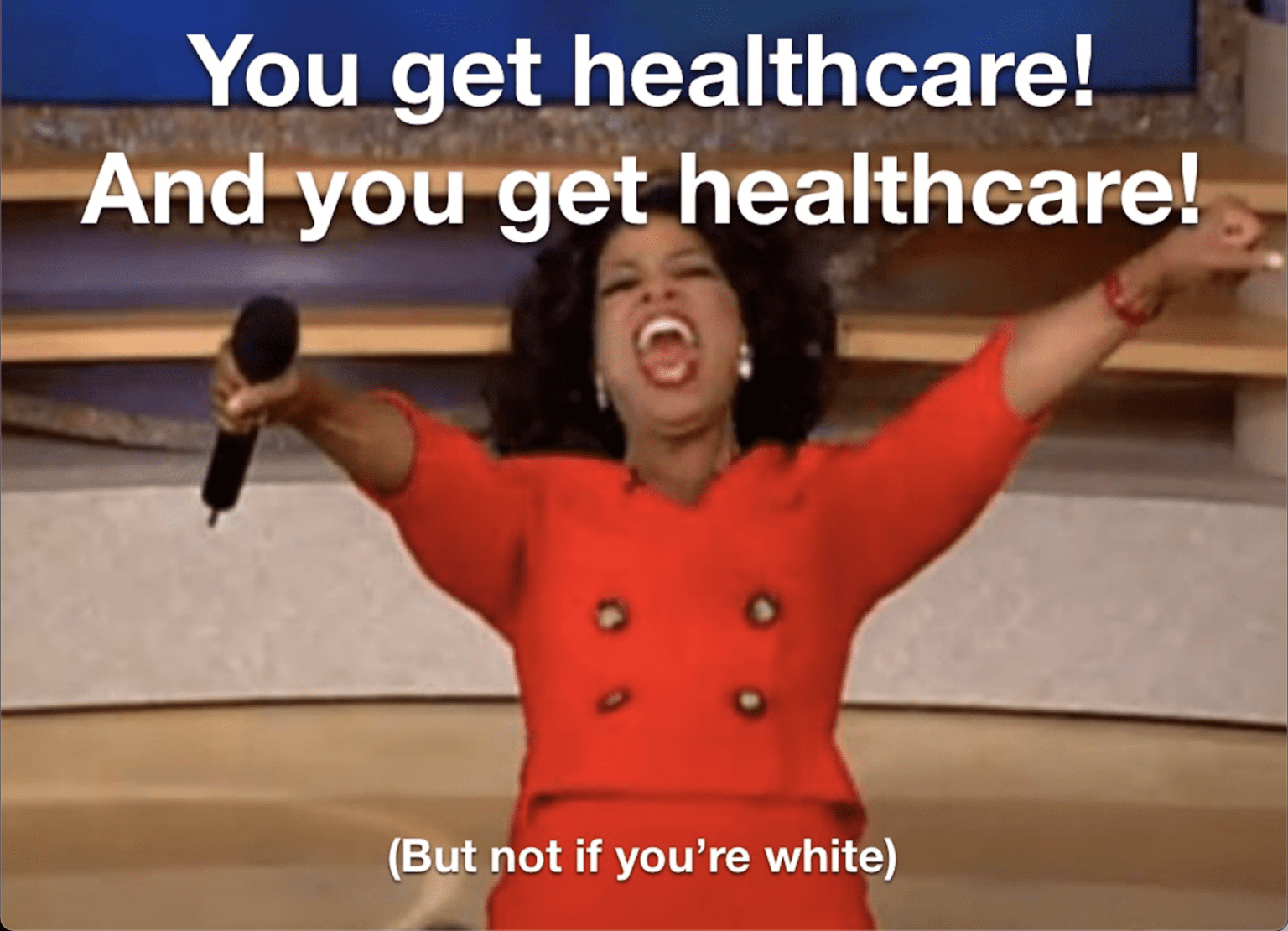 Translation: If you’re BIPOC and need treatment for Covid, come on in. If you’re white, go screw yourself.