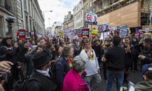 | FacebookTwitterPinterest Demonstrators hold placards during a protest in Whitehall Photograph: Neil Hall/Reuters |
