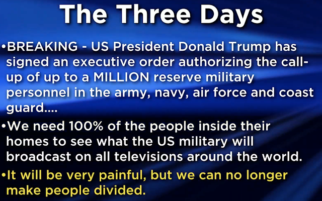 … They’re not going to tell you this is the Mass Arrests… so some people are going to have a serious dark night of the soul when we go through these 3 days… they’re worried this is the end… this is Martial law… that it’s a government takeover… that’s not what it is… the real takeover was going to happen if the illuminati had not been opposed by this amazing group of Military and Intelligence officials not just from the U.S. but all over the world that are working to make sure these plans don’t succeed…