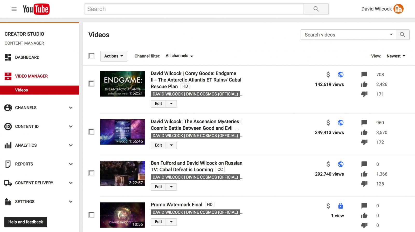 (Stillness in the Storm Editor) David Wilcock posted on Fulford’s report this morning that his YouTube channel, www.youtube.com/davidwilcock333, has been reactivated. He posted an extensive article on the debacle on Saturday evening, which can be found below. He updated that post today, which I have added those sections of to this post.