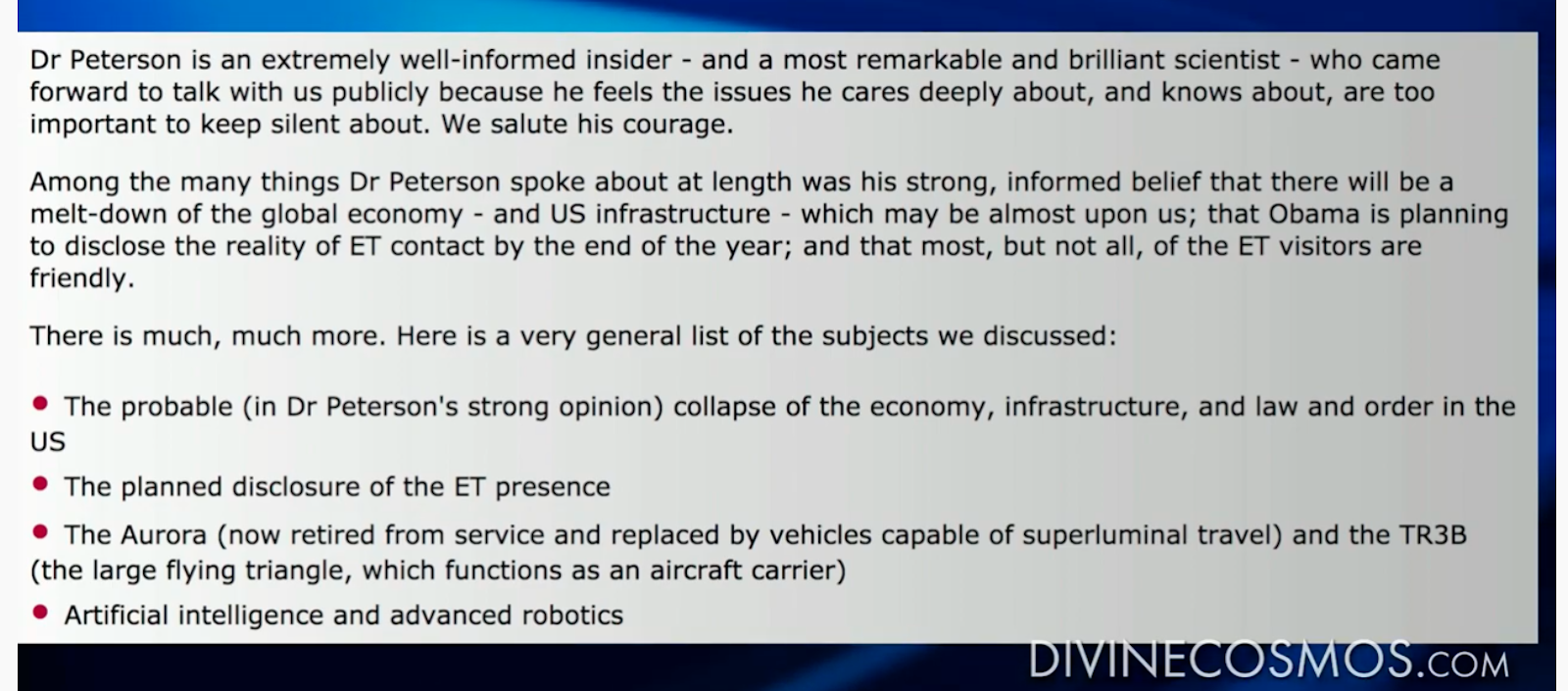 2:59 Pete Peterson was working with Reagan… he was one of the biggest experts in Black Ops technology… his father was Tesla’s lab assistant…