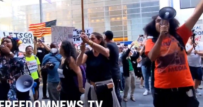 (Cristina Laila) Anti-vaccine mandate protesters on Saturday gathered outside of the New York Times building in New York City chanting, “Defund the media!”