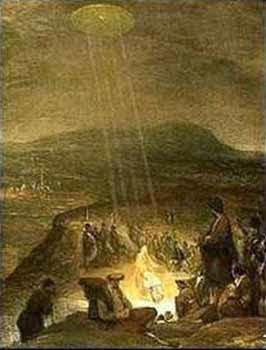 | Painted by Paolo Uccello – circa 1460-1465. Shows a red saucer shaped UFO seen near Jesus. The painting hangs in the Academy of Florence. |
