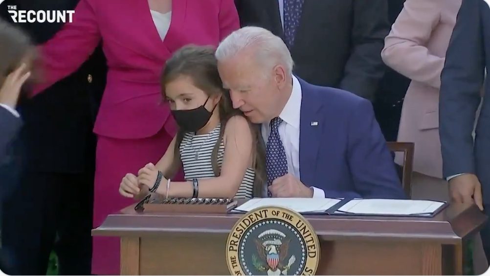 https://twitter.com/disclosetv/status/1423399529257308164?ref_src=twsrc%5Etfw%7Ctwcamp%5Etweetembed%7Ctwterm%5E1423399529257308164%7Ctwgr%5E%7Ctwcon%5Es1_&ref_url=https%3A%2F%2F100percentfedup.com%2Fdisgusting-creepy-joe-summons-little-girl-to-desk-during-bill-signing-ceremonynuzzles-into-herwhispers-something-into-her-ear-video%2F