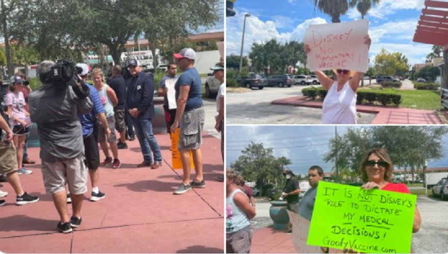 30 plus Disney employees marching against the vaccine mandate. It’s about to start in a few minutes.#Fox35 @fox35orlando pic.twitter.com/vLYZVDrcqk