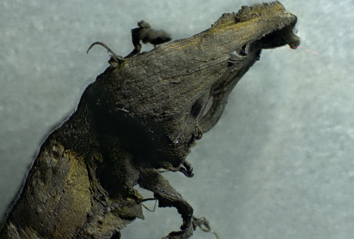 What follows here is a stunning look at what appears to be, at first, a micro-scale wire. Zooming it, we see a series of repeating structures along the top that appear to be nano-scale wire interface junctions. The entire “wire” is made of repeating segments, and its outer layer is covered in repeating “scale-like” patterns that actually resemble reptile skin more than anything human.