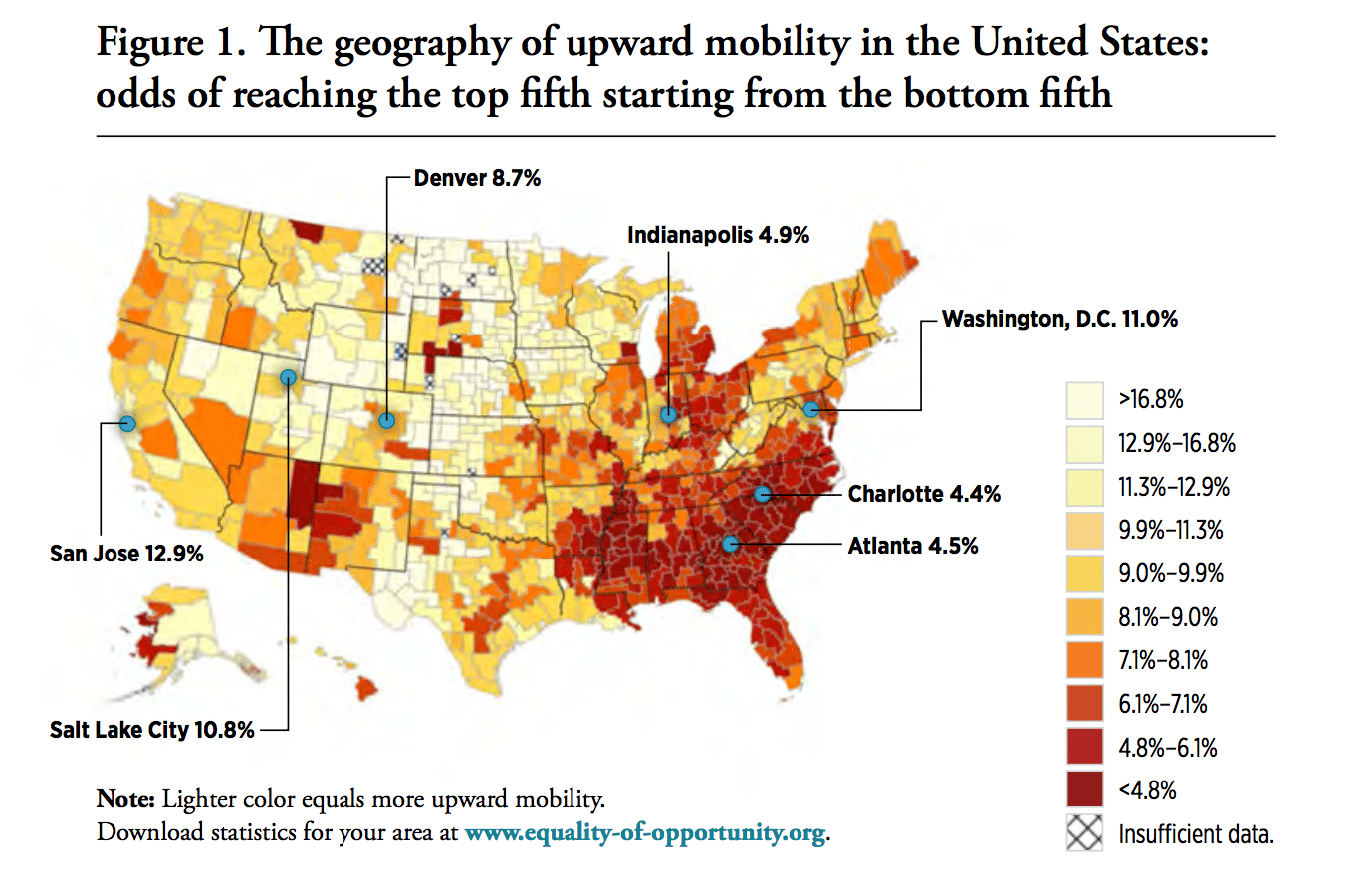 Mitigating circumstances mean certain regions literally aren’t conducive to pulling oneself up by the bootstraps, as has often been criticized of the economically disadvantaged. That level of success — achieving income in the top quintile — cannot be achieved if all of the necessary conditions aren’t in place, as is the case in many areas of the U.S.