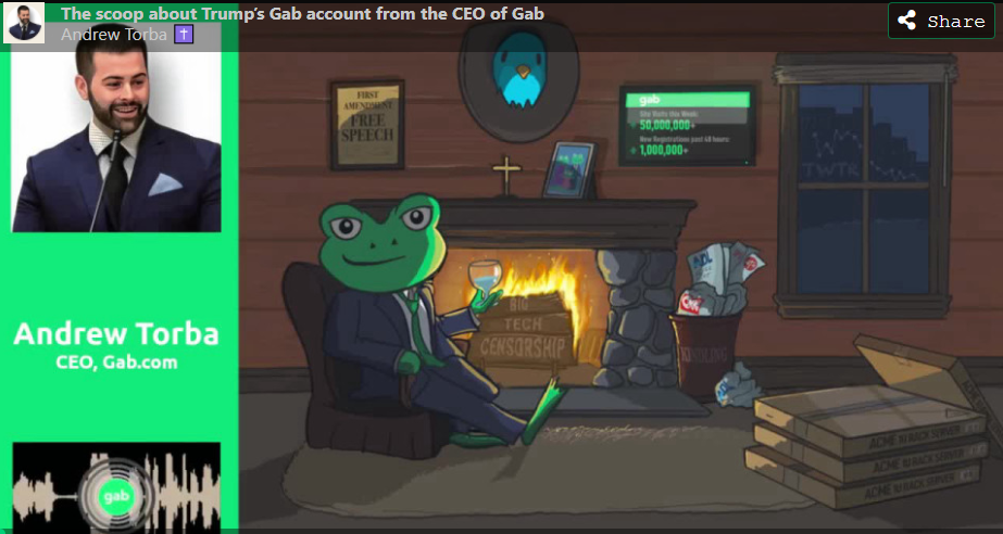 Here’s a voice recorded message from Torba, explaining his surprise to find out that President Trump was on Gab. He also questions Kusher’s advice to Trump: