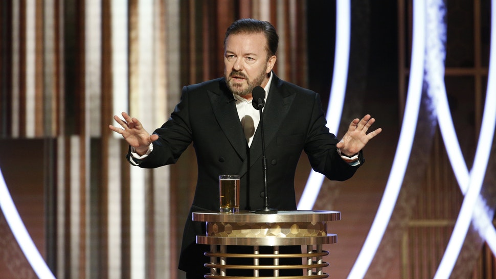 RICKY GERVAIS, 2020 GOLDEN GLOBES HOST: You’ll be pleased to know this is the last time I’m hosting these awards, so I don’t care anymore. I’m joking. I never did. I’m joking, I never did. NBC clearly don’t care either — fifth time. I mean, Kevin Hart was fired from the Oscars for some offensive tweets — hello?