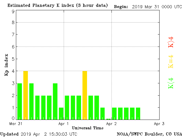 Geomagnetic activity is stable, steady at 1 of the Kp Index. The solar wind intensity is calm. The next earth-facing coronal-hole stream will impact in several days.