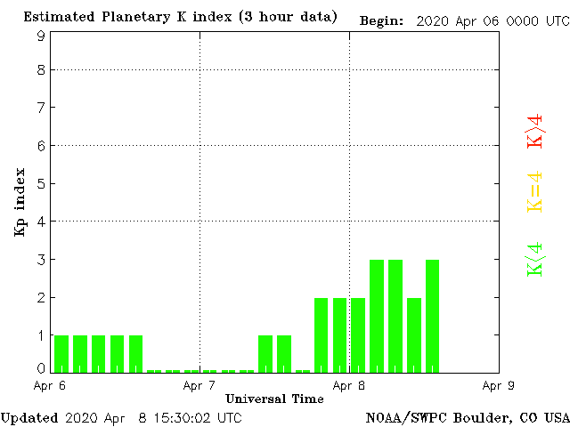 Geomagnetic activity is unstable, ranging from 2 to 4 of the Kp Index. The solar wind intensity rose as a result of a coronal-hole stream impact, causing a minor geomagnetic disturbance. The steam is expected to weaken throughout the day. No major storms are expected.