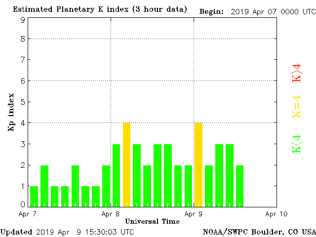 Geomagnetic activity is somewhat stable, ranging from 2 to 3 of the Kp Index. The solar wind intensity is erratic but not potent enough to produce strong geomagnetic storms. The next earth-facing coronal-hole stream is expected to impact the earth in several days.