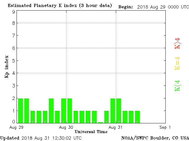 Geomagnetic activity is stable, ranging from 1 to 2 of the Kp Index. The solar wind is calm. Coronal holes are earth-facing and that stream could cause minor upticks in geomagnetic activity when the stream hits later today or tomorrow.