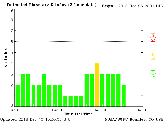 Geomagnetic activity is somewhat unstable, ranging from 2 to 4 of the Kp Index. Solar wind intensity is still rather strong from the coronal hole stream. No major geomagnetic disruptions this morning, due to increased stability of the geomagnetic field. The next earth-facing coronal hole should swing into earth-facing position in several days.