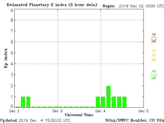 Geomagnetic activity is stable, ranging from 1 to 2 of the Kp Index. The solar wind intensity rose slightly as the leading edge of the stronger coronal-hole stream made contact with the geomagnetic field late last night. The intensity of the incoming solar-wind stream is still strong, now likely to make earth-fall sometime on the 4th, tomorrow. Moderate geomagnetic disturbances are possible when that stream hits tomorrow.