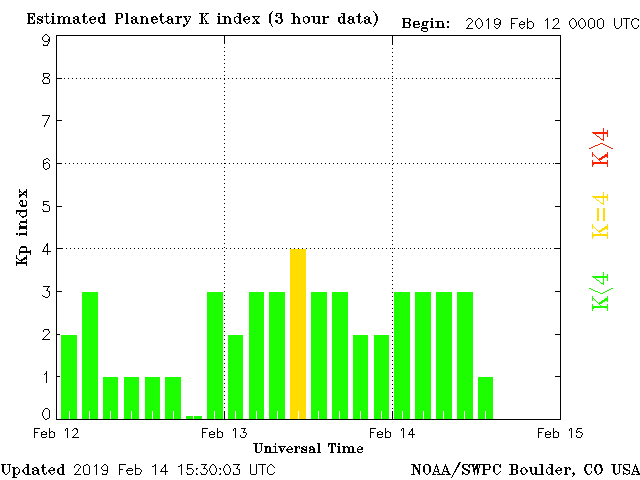 Geomagnetic activity is somewhat unstable, ranging from 1 to 3 of the Kp Index. The solar wind intensity is still modest but with little effect on the geomagnetic field. Over the past eight days, no phi angle coupling has taken place, resulting in reduced seismic activity. Geomagnetic conditions should remain rather calm over the next few days.